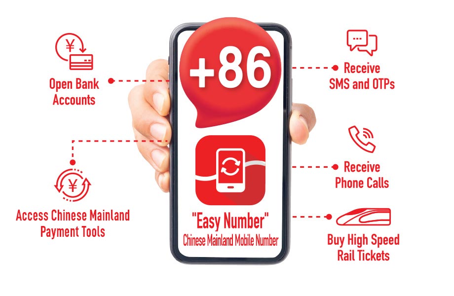 1 The scope and service applicability of "Easy Number" Chinese Mainland Mobile Number depend on the network coverage and service terms of third-party service providers. Please contact the respective service provider for details.